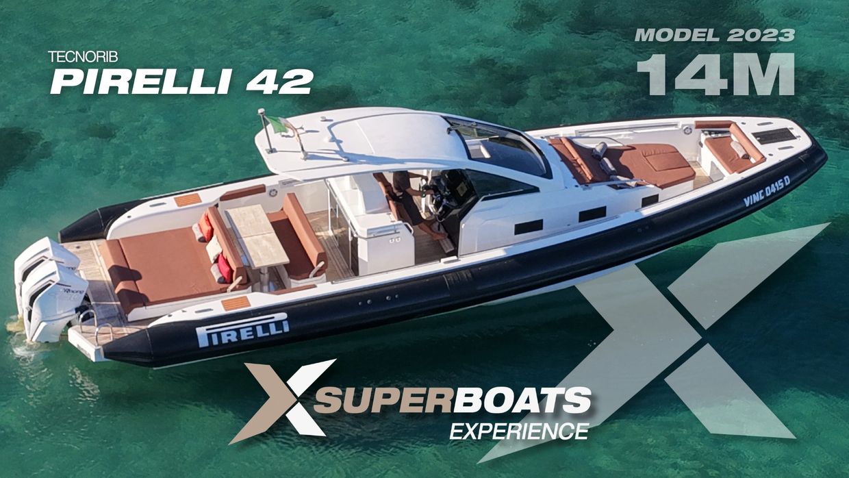 The Pirelli 42 by Tecnorib is a stylish and versatile MAXI RIB that combines elegance with high performance. Measuring 14 meters (appx.), it offers a spacious deck, perfect for sunbathing and socializing, along with a modern cabin below for added comfort. Powered by twin engines, the Pirelli 42 delivers impressive speed and smooth handling, ideal for both cruising and water sports. With its sleek design, premium finishes, and advanced technology, the Pirelli 42 is the perfect blend of luxury and functionality on the water.