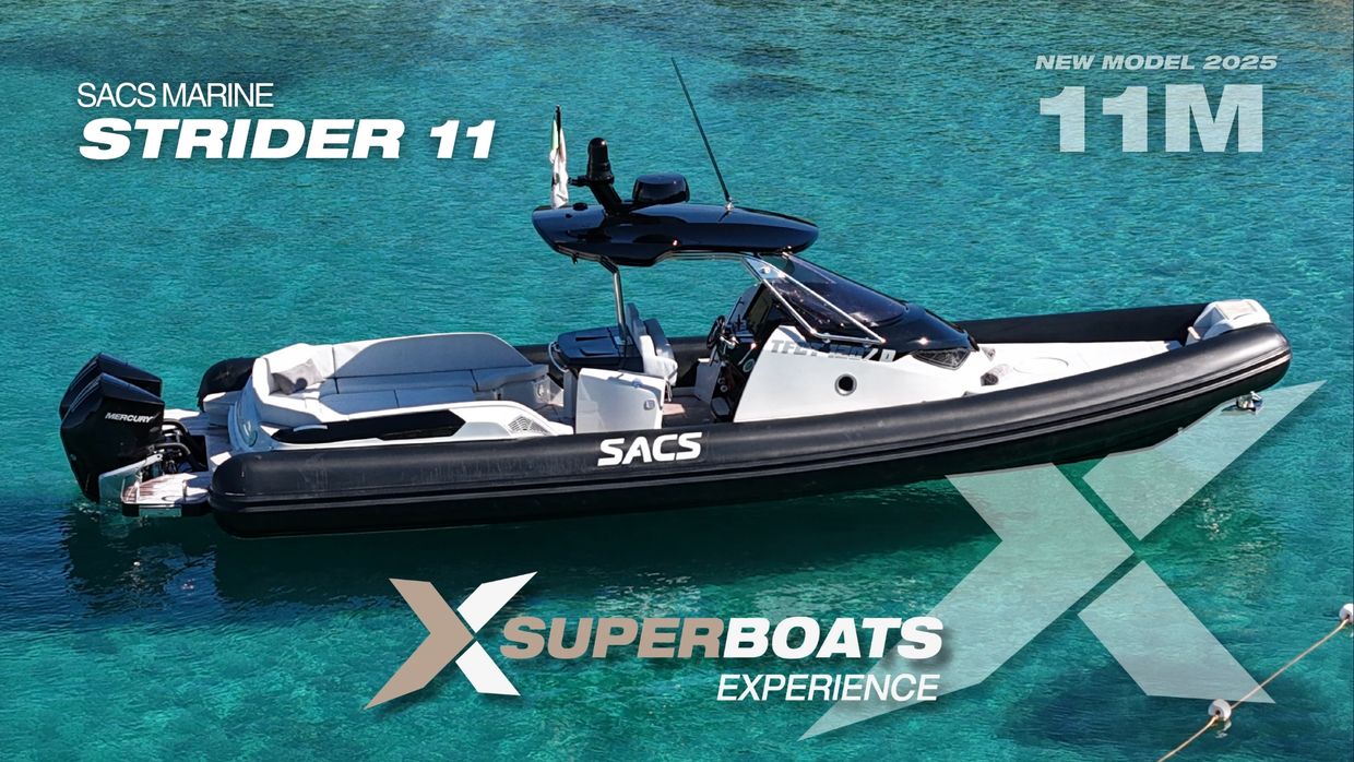 The new Strider 11 by Sacs Marine is a dynamic and luxurious RIB designed for both performance and comfort. Measuring 11 meters, it features a spacious, open deck with elegant seating and a sunbathing area, ideal for relaxing and socializing. Below deck, a cozy cabin offers added comfort for longer trips. Powered by twin engines, the Strider 11 combines speed, agility, and smooth handling, making it perfect for high-speed cruising or leisurely coastal exploration. With its sleek design and premium finishes, the Strider 11 is a perfect blend of style and functionality.