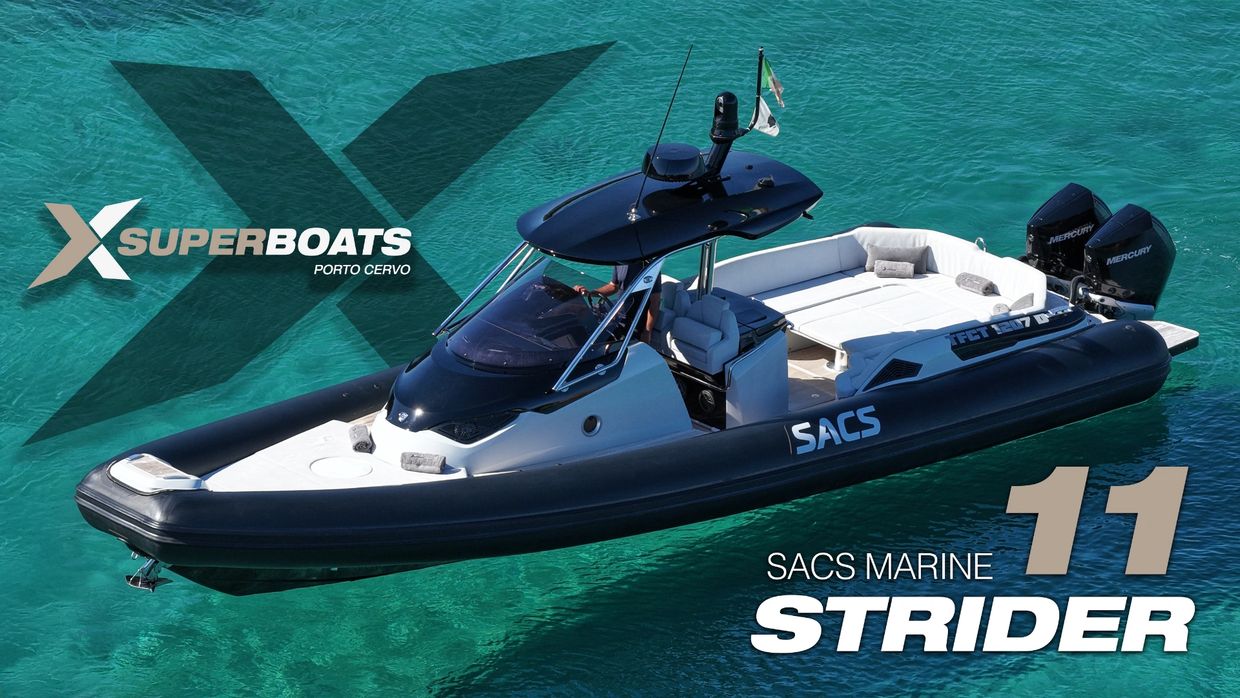 The new Strider 11 by Sacs Marine is a dynamic and luxurious RIB designed for both performance and comfort. Measuring 11 meters, it features a spacious, open deck with elegant seating and a sunbathing area, ideal for relaxing and socializing. Below deck, a cozy cabin offers added comfort for longer trips. Powered by twin engines, the Strider 11 combines speed, agility, and smooth handling, making it perfect for high-speed cruising or leisurely coastal exploration. With its sleek design and premium finishes, the Strider 11 is a perfect blend of style and functionality.